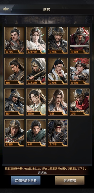 将星連珠は武将を選択して獲得を目指せる点が魅力ですが、武将を獲得するとほかの武将を選択して再度獲得を目指すといったことはできません。そのためもし獲得をすると決めた場合、どの武将を選択するかが重要となってきます。